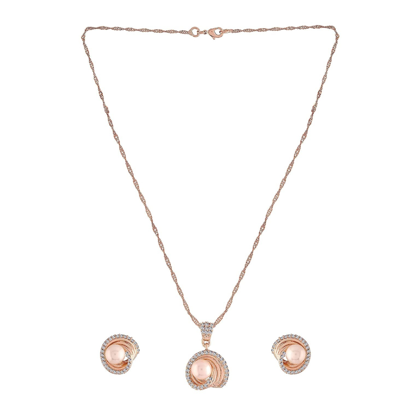 18k Rose Gold Plated Glittering Cubic Zirconia Designer Chain Pendent Necklace Jewellery Set