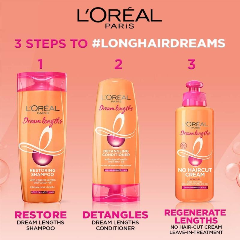 • Dream Lengths shampoo, for dry, damaged and frizzy long hair, Creamy texture tames unruly lengths, Protects hair from breakage