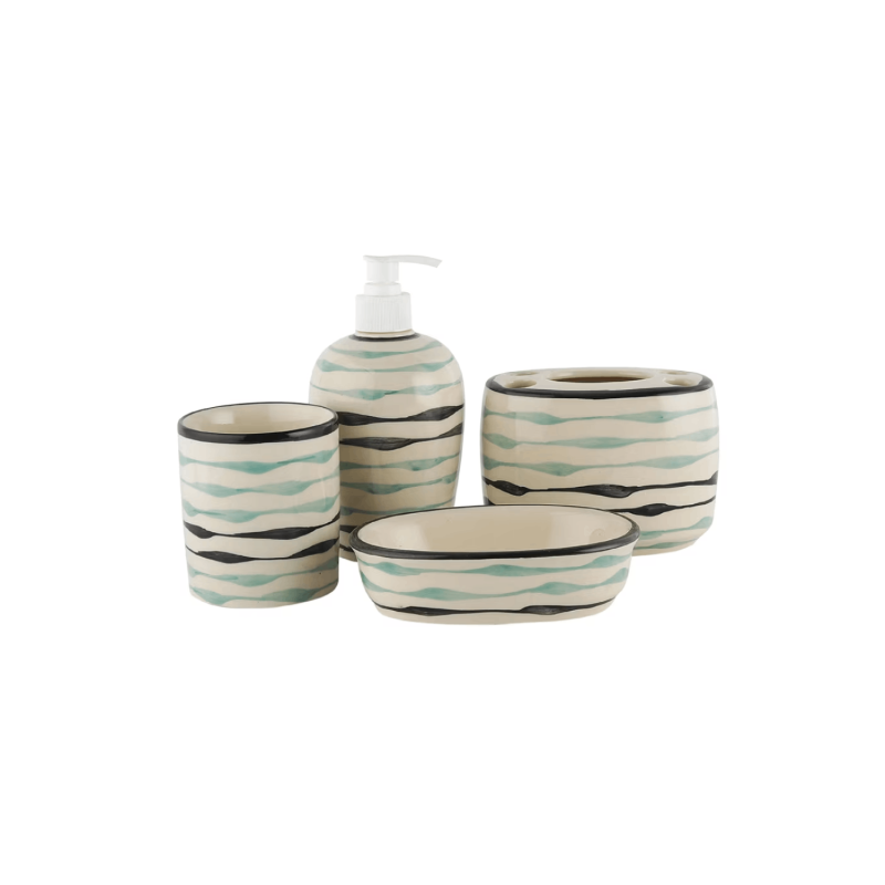 Package contains: 1 soap dispenser, 1 soap dish, 1 tumbler,1 brush holder