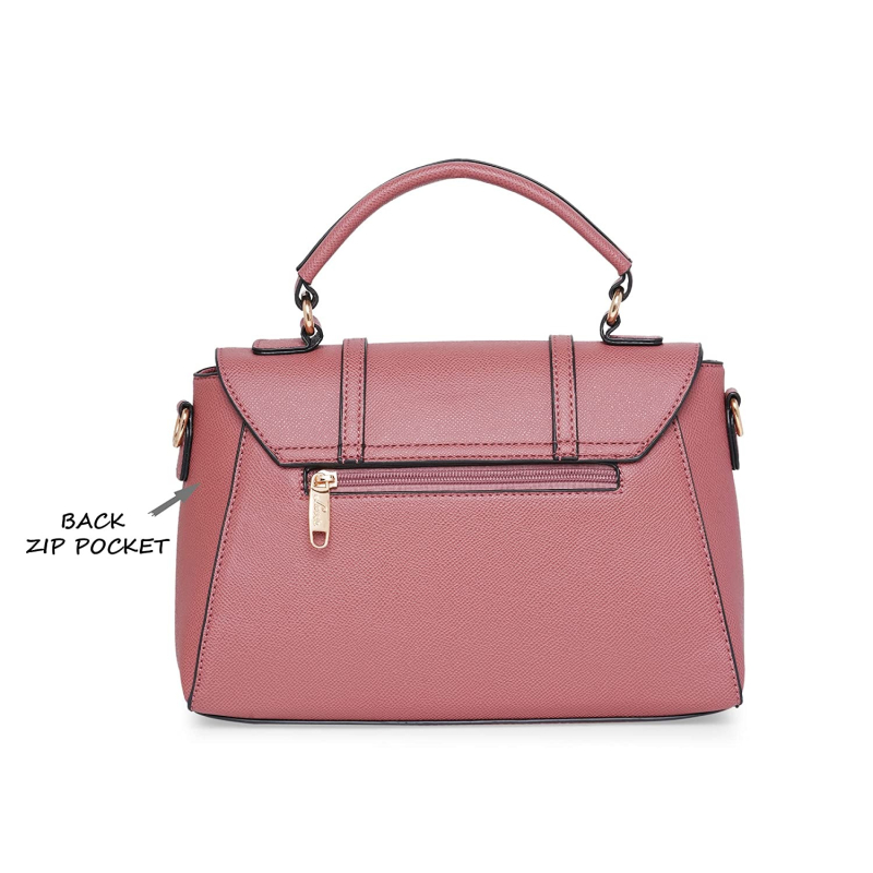 • The Beech handbag has a top zip closure for safety and security. The interior has 1 main compartment, divided by inner zip storage, 2 slip pockets alongside 1 external zip pocket, providing plenty of storage space for keeping a phone, portable charger, keys, hairbrush, wallet, sunglasses, sanitizer, etc. It also has a detachable and adjustable sling belt for multipurpose use.