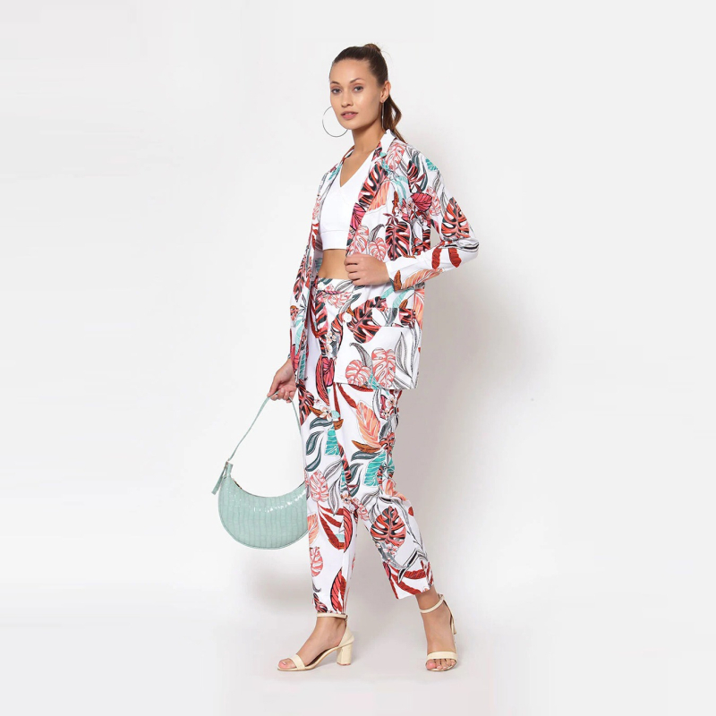 Women Tropical Print Single-Breasted Blazer